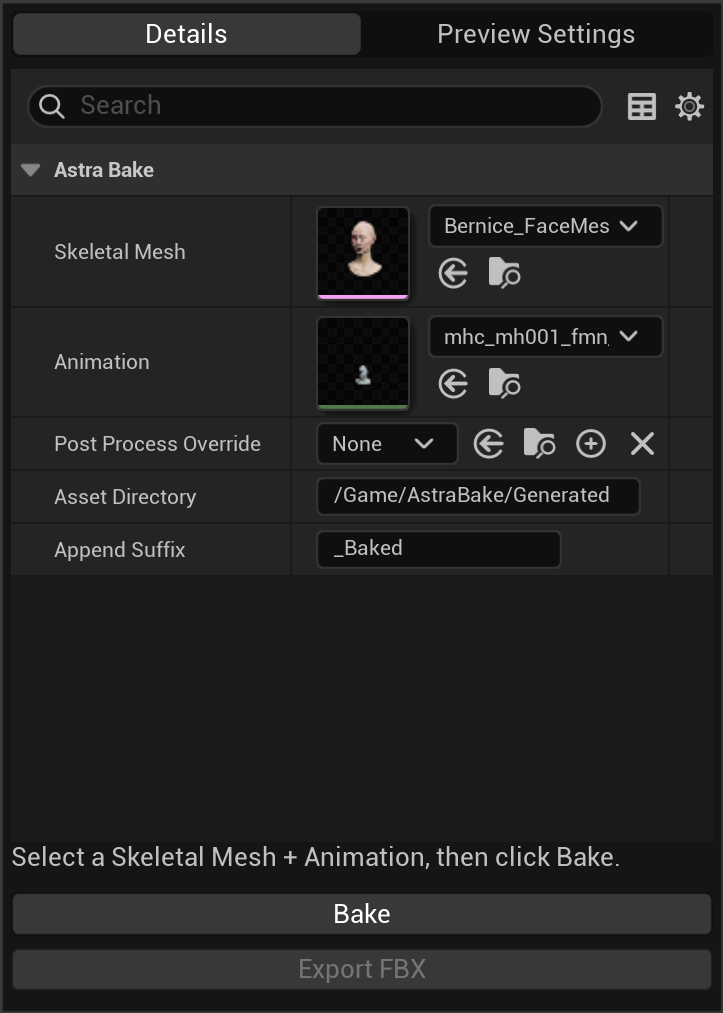 AstraBake bakes Metahuman Riglogic based Animation to bone animation that can then be used in DCCs like Blender.